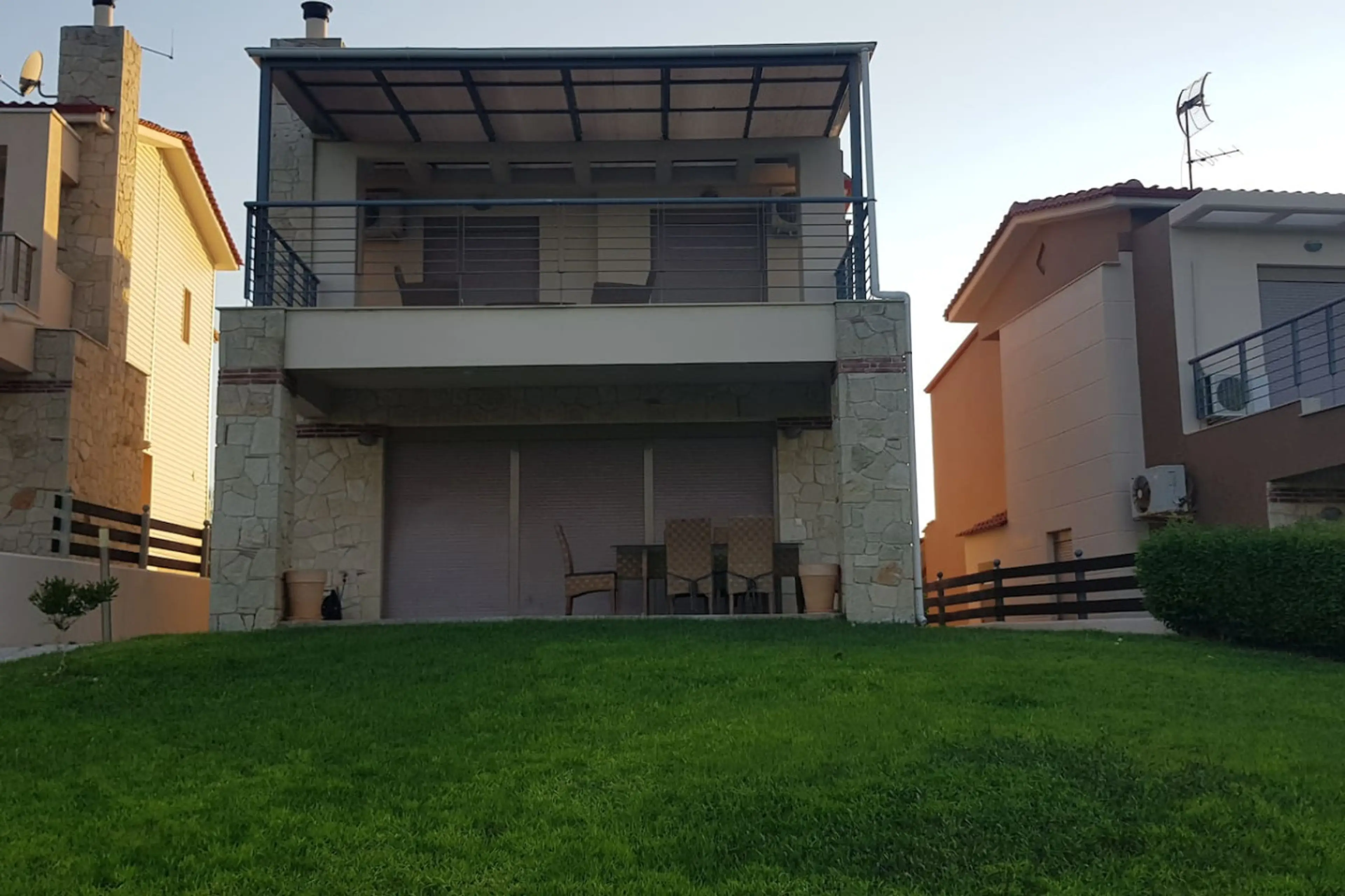 Η Βίλα είναι αυτοτελής και βρίσκεται σε ένα συγκρότημα πέτρινων βιλών με υπέροχη θέα στο Τορωναίο. Το σπίτι αποτελείται από 4 ευρύχωρα δωμάτια, μεγάλες βεράντες, μπροστά και πίσω κήπο, BQ, πλήρως εξοπλισμένη κουζίνα και 2 μπάνια με shower. Υπάρχει γρήγορο δωρεάν Wi-Fi