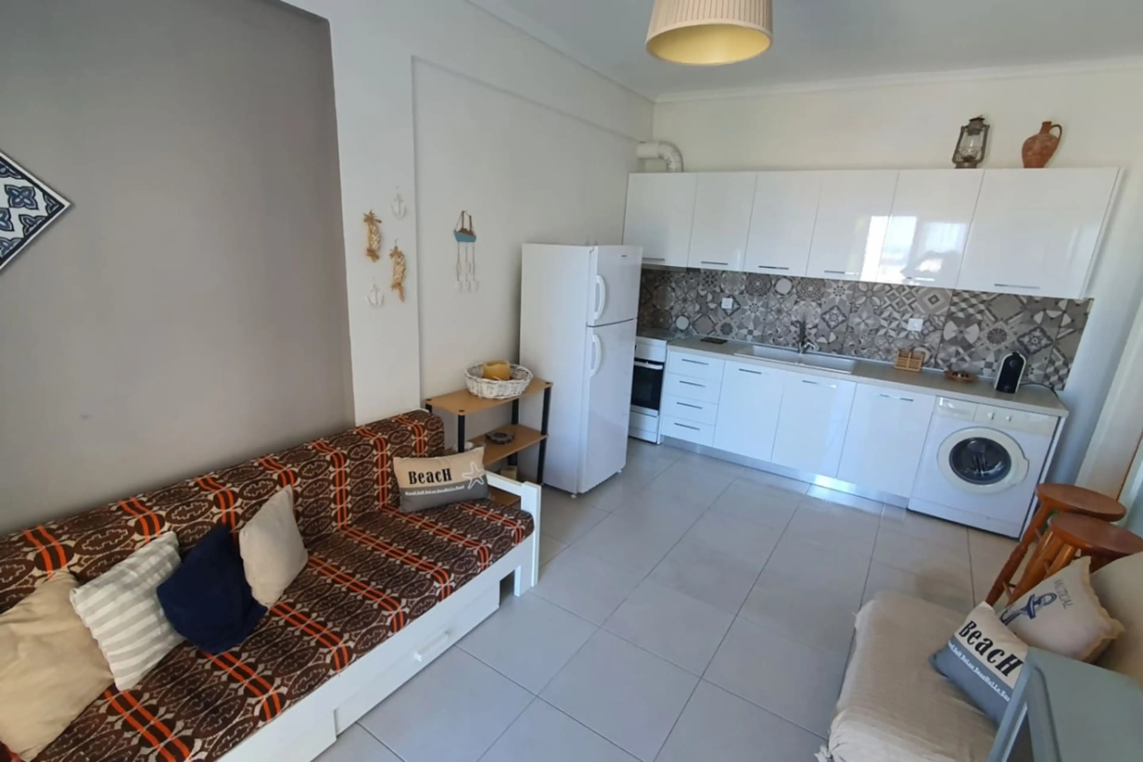 Recently renovated 2 bedroom apartment in an apartment building within walking distance (80m) from a beautiful sandy beach and very close to the village of Hanioti. The location of the apartment makes it ideal for a relaxing family vacation away from the crowds of the village but close to all amenit...